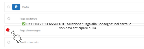 ✅ RISCHIO ZERO ASSOLUTO: Seleziona "Paga alla Consegna" nel carrello. Non devi anticipare nulla.